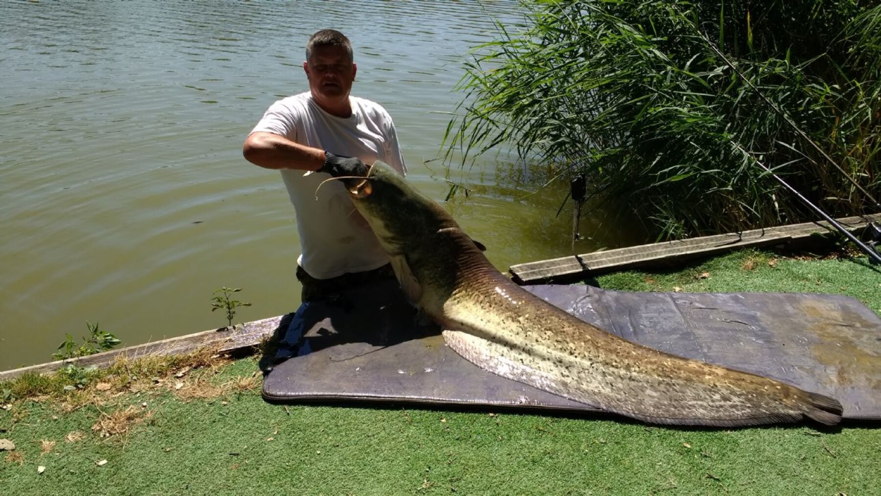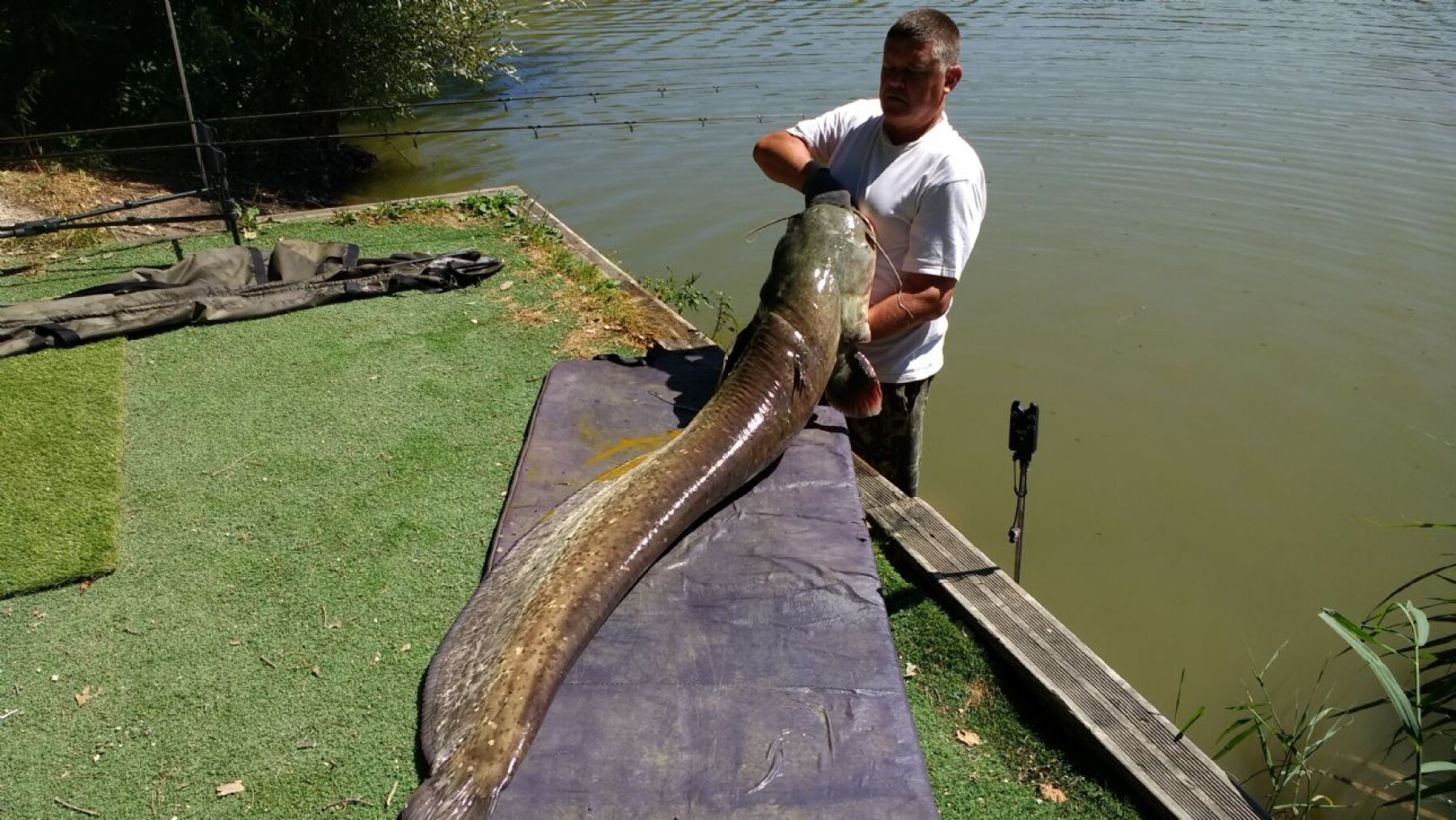 Hot with lots of sun not ideal fishing conditions but the 4 guys managed 25 carp 2 forties and 16 thirty plus a 106 lb cat